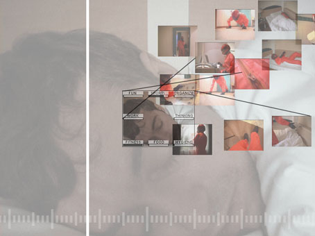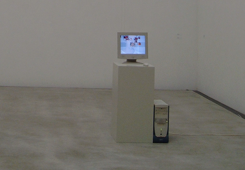72 videos ranging from 20 seconds to 2 minutes in length are played in the program TWML (Two-Way-Movie-Linker). Programmed with Macromedia Director.