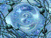 Das Hauptmenue der Installation "Bubbles" zeigt röhrenartige Gebilde mit pulsierenden Verdickungen. Auf diesen lebendig anmutenden Objekten befinden sich Druckschalter, welche direkt auf der Projektionsscheibe (Rückprojektion) befestigt sind. Die rhythmischen Bewegungen der Verdickungen betonen die Bedeutung der Elektrotaster. Die Schalter befinden sich hinter einer durchsichtigen, das gesamte Videobild überspannenden Plastikfolie. In die Folie sind mit Wasser gefüllte Adern eingelassen durch die Luftblasen "blubbern". Die Druckschalter erlauben es, verschieden Videosquenzen auszulösen. Beim Druck auf die Bahnen der Luftblasen können deren Wege umgeleitet werden. Befindet sich kein Betrachter in unmittelbarer Nähe der Projektionsfläche, erscheinen kleine animierte Teilchen. Diese "Wasserflöhe" kommen dem interessierten Besucher entgegen, wenn er dicht an das Videobild herantritt, um den Schwarm von kleinen Objekten zu betrachten. Kontaktmatten ermitteln hierbei seinen Standpunkt.