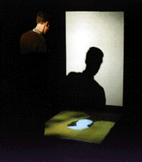 Der Schatten wird von einer Videokamera aufgenommen. Mit Hilfe eines Bildmischers